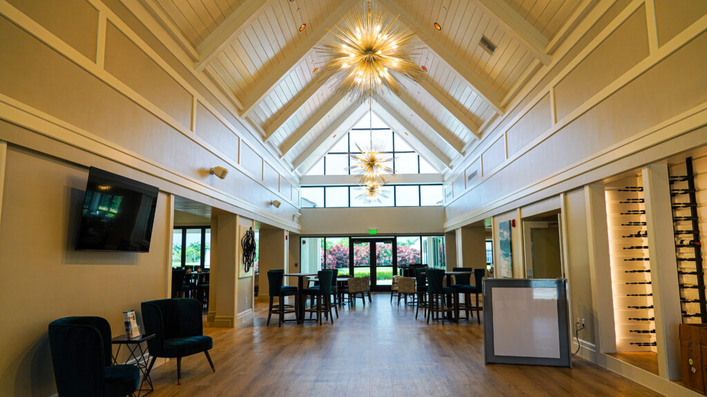 The project added approximately 11,000 to 12,000 square feet to the clubhouse, including a larger indoor bar with vaulted ceilings and triple the previous seating capacity, along with additional space for social gatherings and meetings.