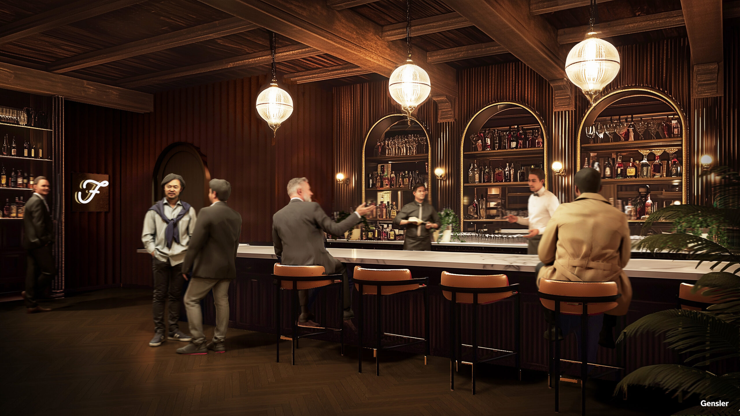 With that framework, the group agreed an event space was essential. They also prioritized a speakeasy and cigar lounge, and, to keep the club active throughout the day, a coffee café.