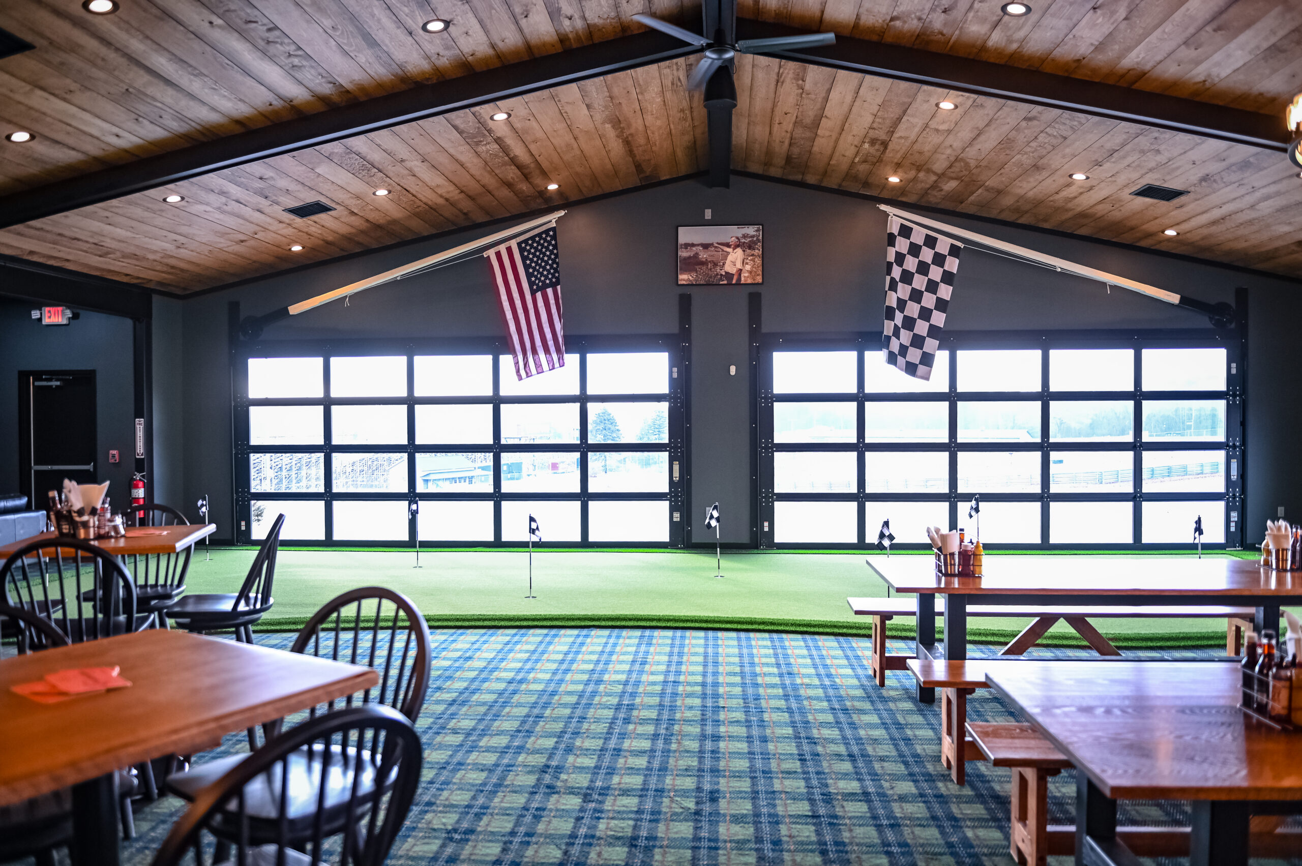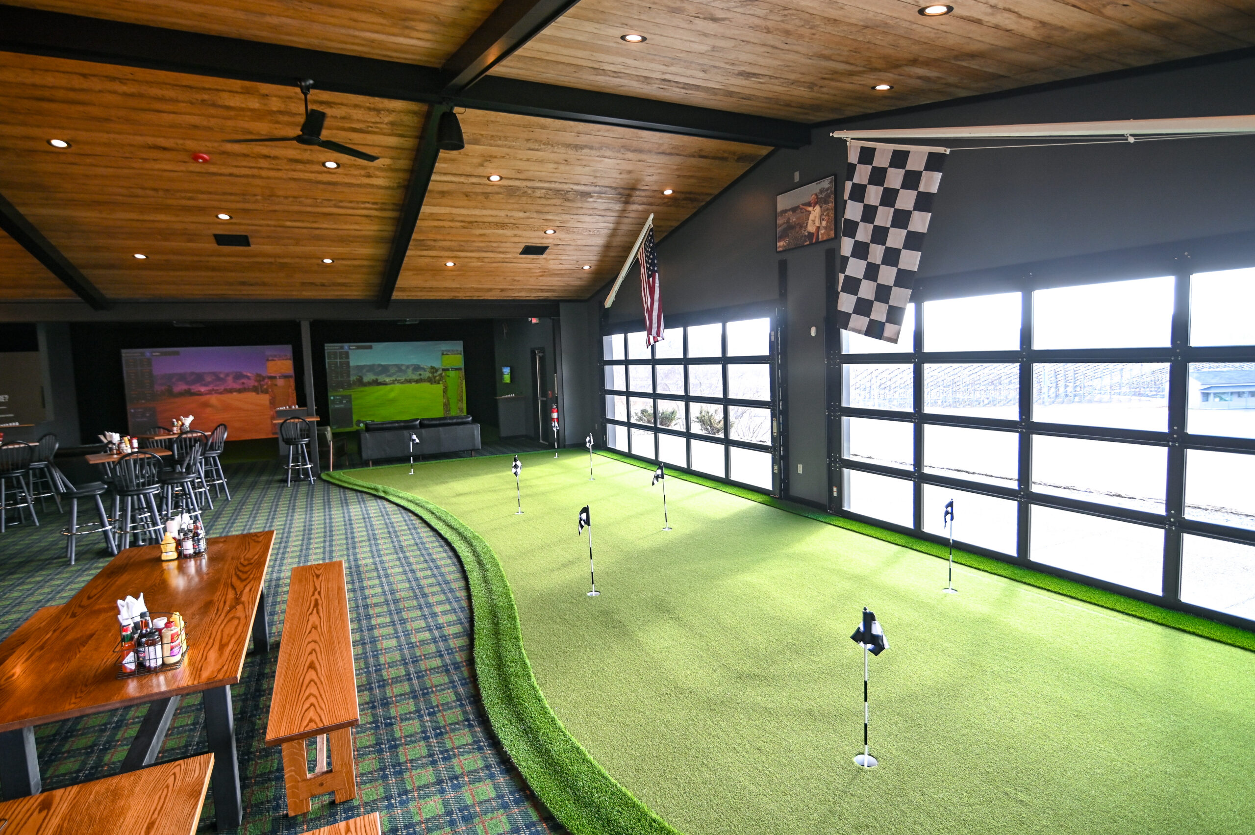 The additions included four golf simulators designed to show off the club’s racing and drifting course, 600 square feet of putting green, a wraparound patio overlooking the race track, and a racing simulator.